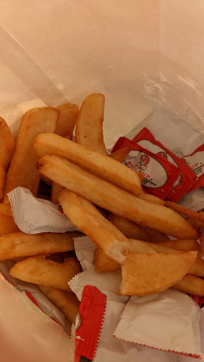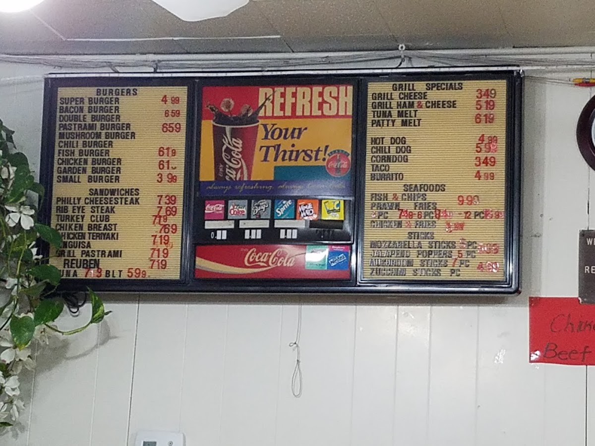 This place has been around for over 13 years. It's a mom-and-pop fast food spot. They are known for their great burger and fries with seasoned salt. The service is good and the atmosphere is ok. They need to upgrade. All outside seating is outdated and cracked. The place needs some new paint and signs. I ordered a fish burger with fries and it was good as usual. Parking is located on the street or in the lot.